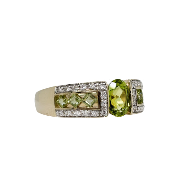 Contemporary Elegance | 9K Yellow Gold Peridot & Diamond Ring