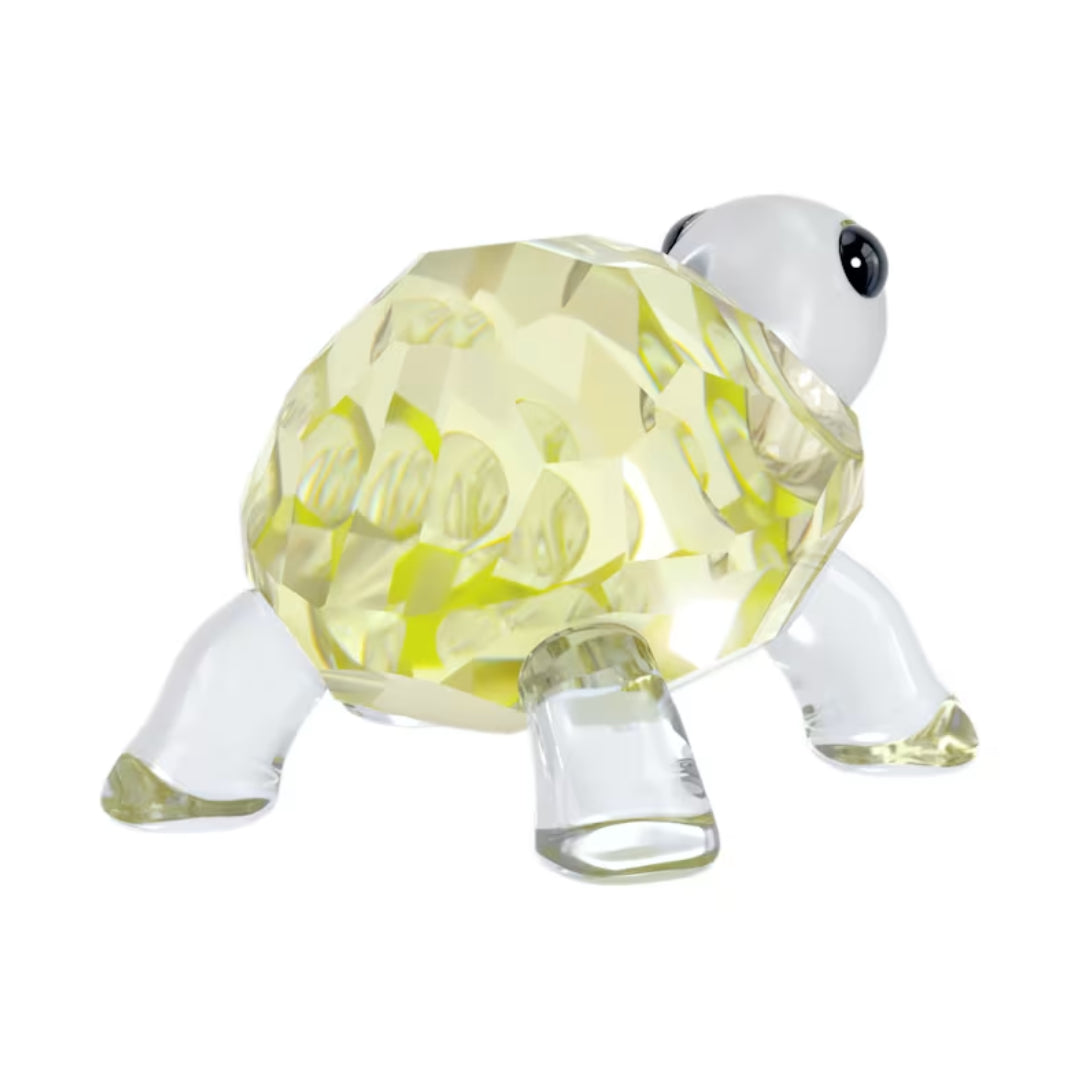 Full of charm and curiosity, this baby tortoise decoration takes the first step in a charming story of nature. Crafted with 71 facets, the design includes the pairing of transparent crystal and warm yellow shades, resulting in a beautiful décor piece that captures the innocence of new beginnings. Decoration object. Not a toy. Not suitable for children under 15.
