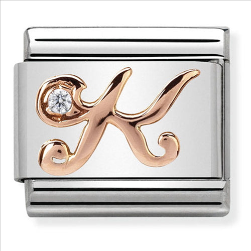 Original Composable Link for Nomination's Composable Classic Bracelet with letter K in 9K rose gold on stainless steel. Made in Italy.